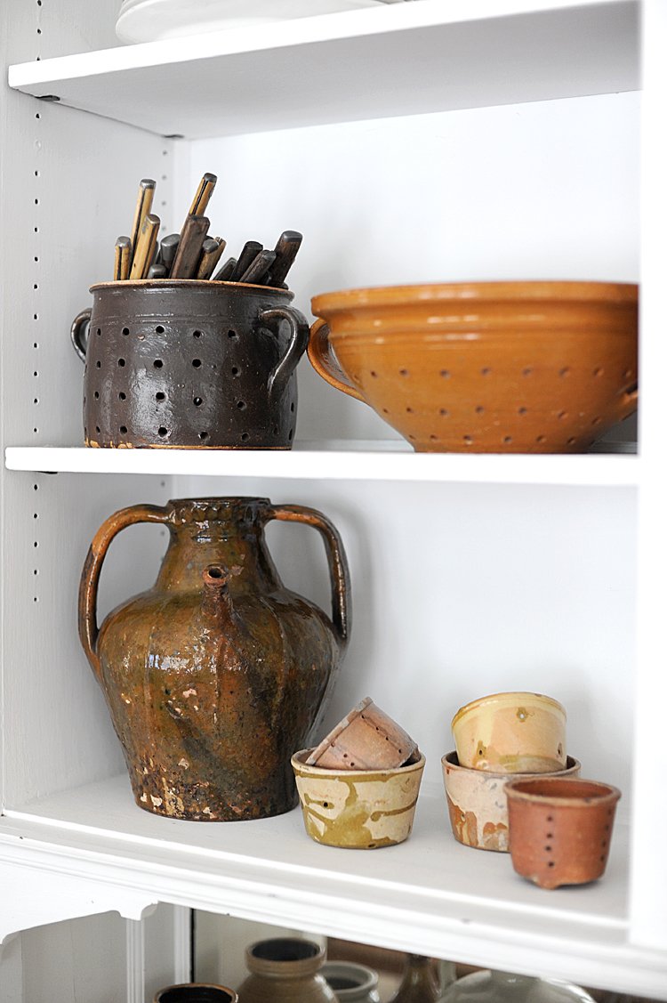 My obsession with antique French pottery started out after I bought one of my favorite vintage books; The French Country Table: Pottery & Faience of Provence by Bernard Duplessy. I have a massive collection of vintage decor books that show these beautiful pottery pieces being used in everyday life which I love so much. Faisselle molds for making French cheese, walnut oil jugs for storing the walnut oil harvest, cruches for collecting spring water, colanders for washing produce from the garden, confit pots buried halfway in the ground for preserving duck confit, and tian bowls for washing up dishes in. If I had to pick out one of my antiques that I would never sell it would be my huge 400 year old French pottery walnut oil jar (not pictured)!