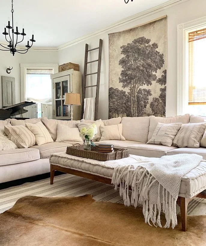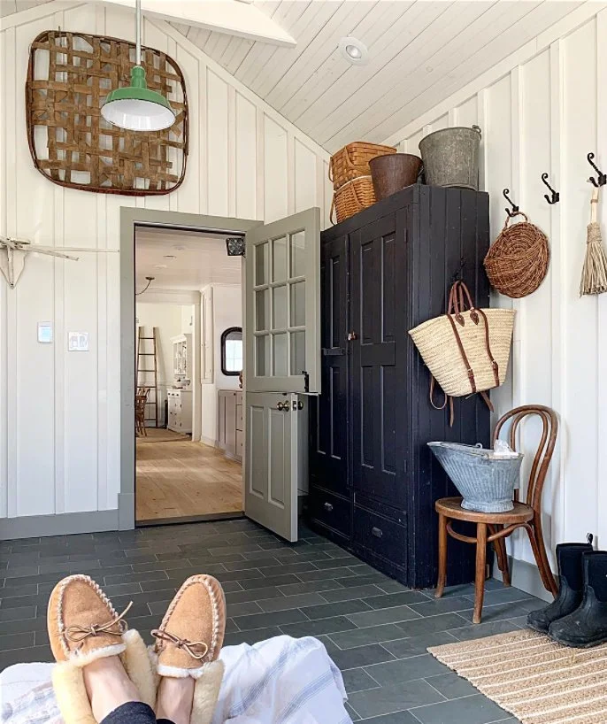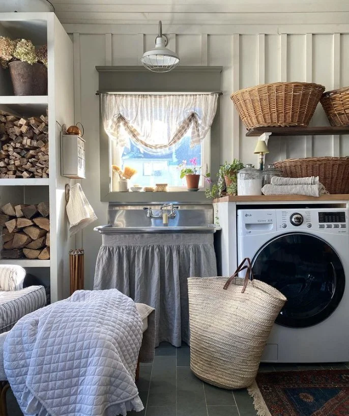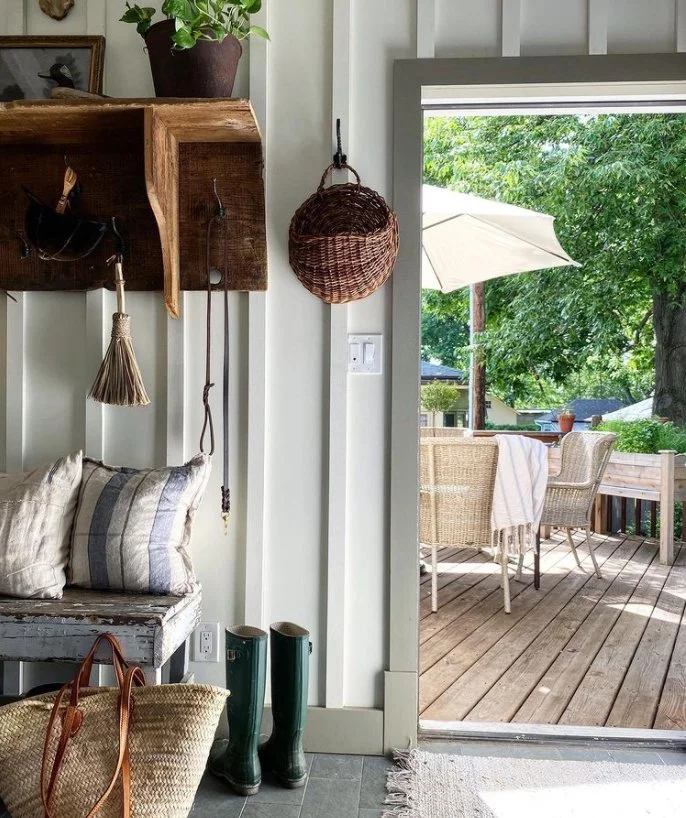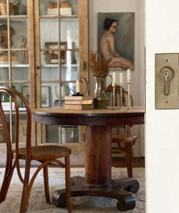 Tina of Union Willow on Instagram is such an amazing decorator & interior designer! I love how she decorates with so many antiques without making it look cluttered or overwhelming. It definitely takes skill to do that. She owns a 100+ year old house in New York that she has restored with her husband. I love how she styles the vintage sap bucket & French La Lorraine jar, she got from the shoppe, in so many different ways. She even styles the French straw market bag cute!